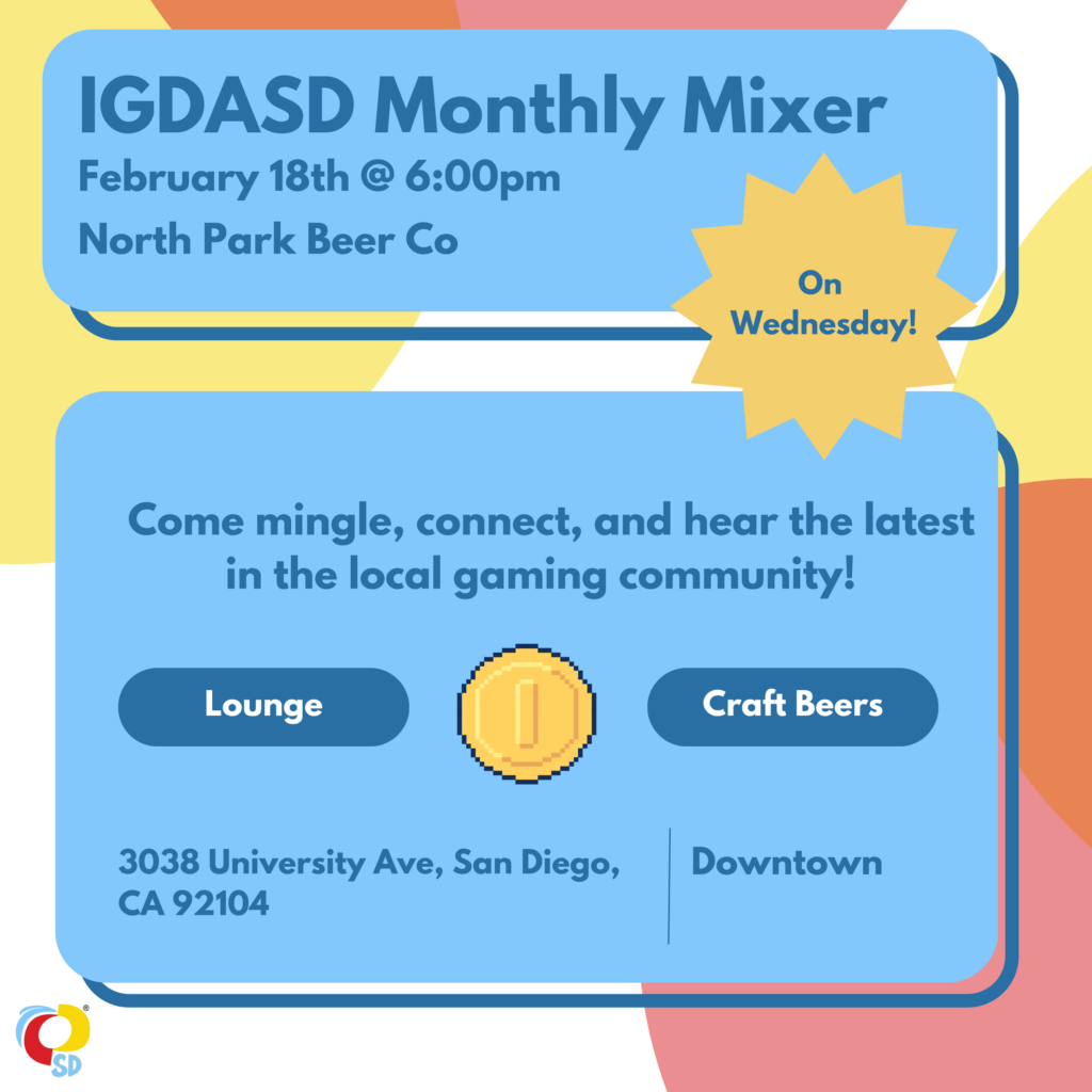 Come join us in discussing the game of the month! We’ll be talking mechanics, narrative, sound design, aesthetics, and anything in between! Find more information on the IGDA-SD Discord in the game club section! Vote for our monthly games and more!